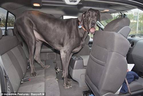With size comes problems: The giant great dane barely fits in the back of his owner's SUV